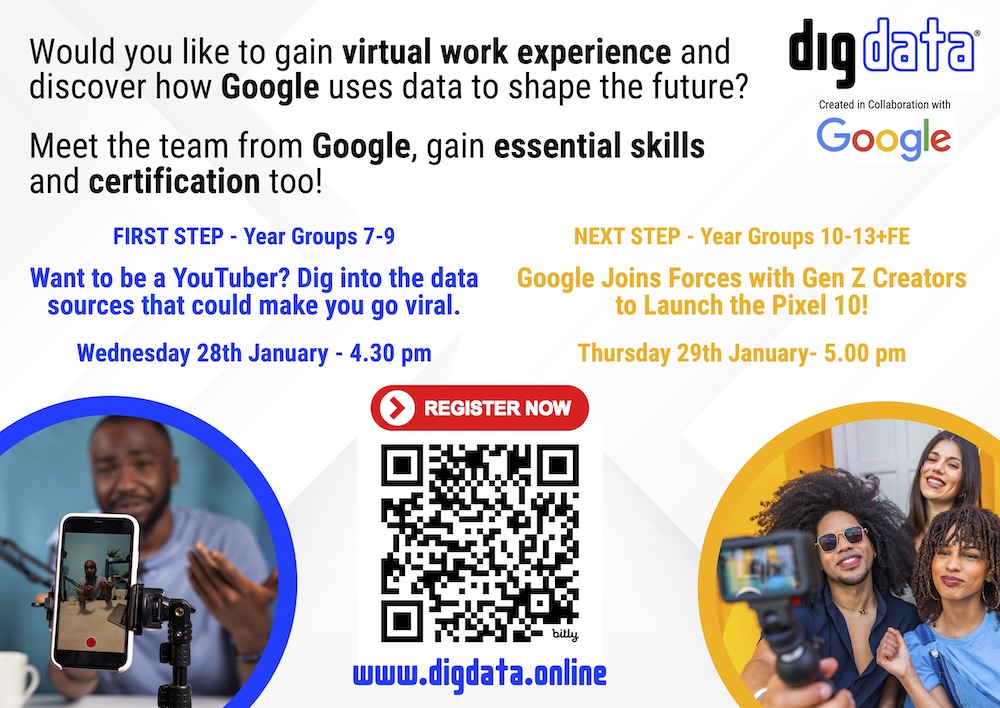 Students across all year groups have been invited to join one of two online career challenges hosted by Digdata in collaboration with Google UK's marketing team.